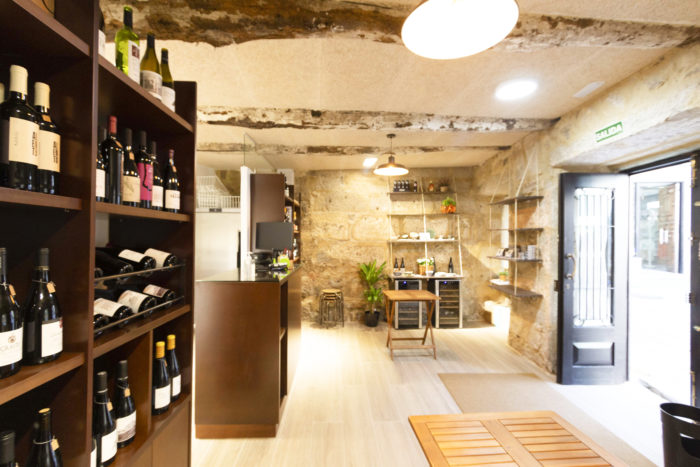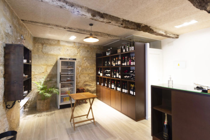 Ó ser un local de reducidas dimensións, preténdese xerar sensación de amplitude reducindo as divisións internas á zona de aseo e ubicando os expositores de viño, conservas e artesanía de Galicia de xeito que non resten protagonismo á pedra. Ó estar ubicado no Casco Vello, debíase conservar a súa fachada, carpinterías e letreiro orixinal, polo que reparáronse e repintáronse.