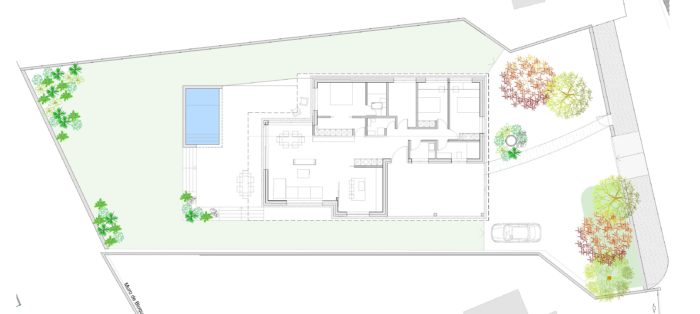 A idea de poder habitar esta vivenda ó longo dos anos e que poidese adaptarse a tódalas posibles necesidades e etapas da vida, condicionou o xeito de implantación na parcela, e na que a accesibilidade e a optimización do espazo útil era unha cuestión moi importante a ter en conta.